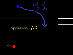 back to the first grouping of pipbombs, you peel off, and when he walks over