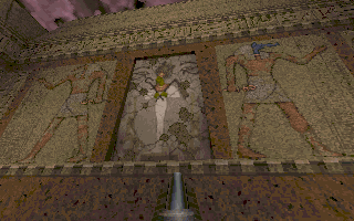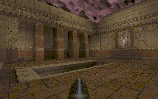 walls and columns, artwork adorns torch lit walls and narrow passageways.