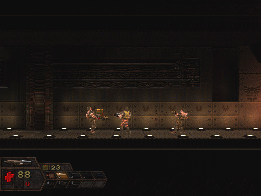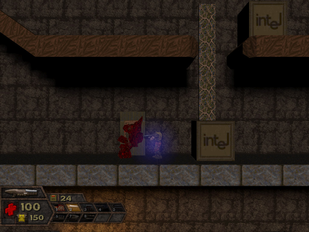 Arcade Quake or AQ is 2D-like platform mod for quake based on heavily modified Quake engine. It uses quake techology basement and action is performed on special 3D maps created in GtkRadiant/BSP/whatever_quake_map_editor. Main goal of Arcade Quake is to bring ultimate arcade gaming experience to Quake, while keeping gameplay faithfully tied with it's parent.