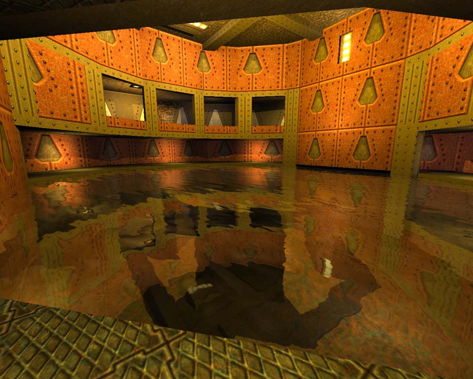 The only giveaway is because Darkplaces shadows doesnt seem to always show in the water- making it appear quite bright and uniform color- if it reflected the dark underside of the obstacles above, it would work perfectly to cover up that other issue.