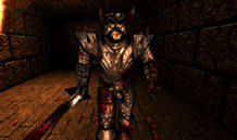 The Death Knight (also known as the Hell Knight) makes his first appearance in the levels " The Crypt of Decay" on act 2. Try to see on www.quaddicted.com for list of levels. Often seen patrolling, he makes low hoarse grunts, rather than growls, which can be identified from a distance in the same levels. Distinguishable by his horned helmet, armor, and sheer size, a new player may hesitate on initiating combat with the Death Knight, it's hard to fight.