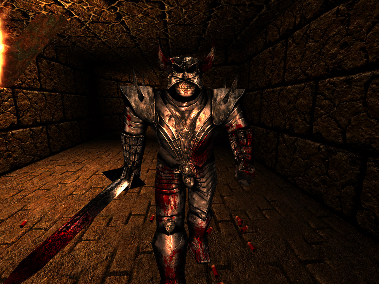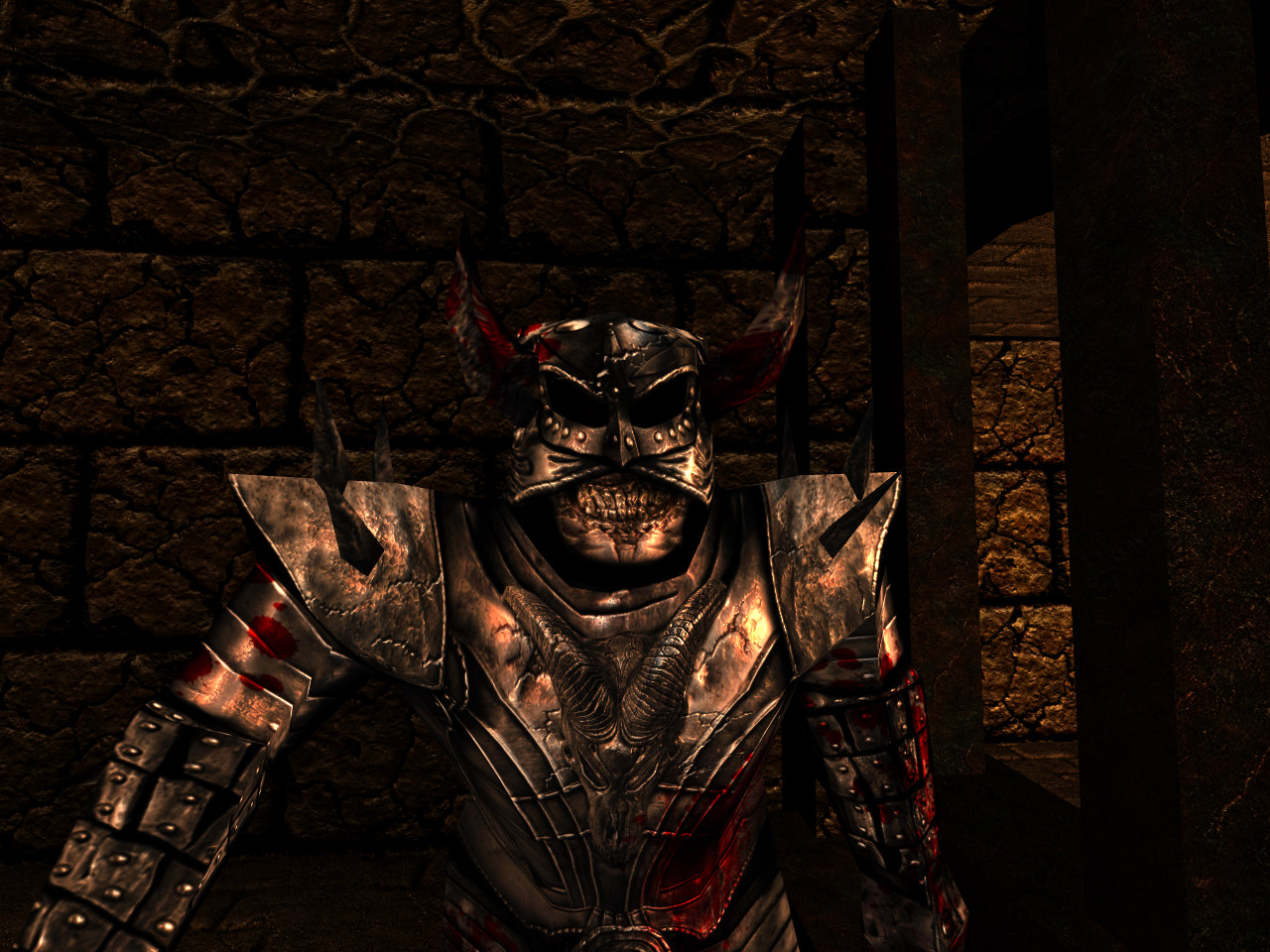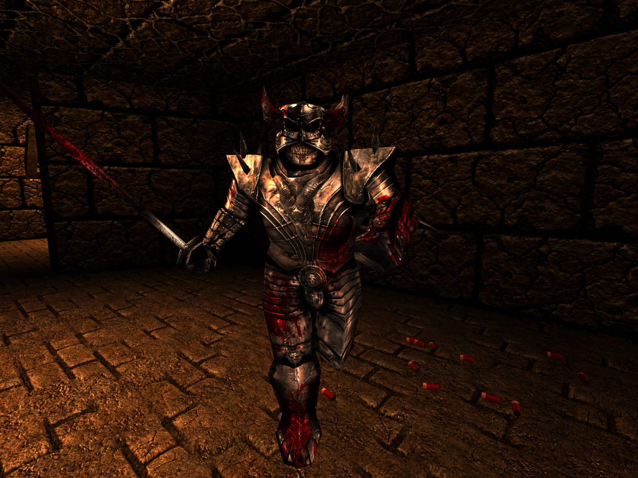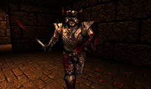 In Quake 1, a Death Knight resembles a large man in a fierce-looking, blood-flecked suit of armour with a horned helm