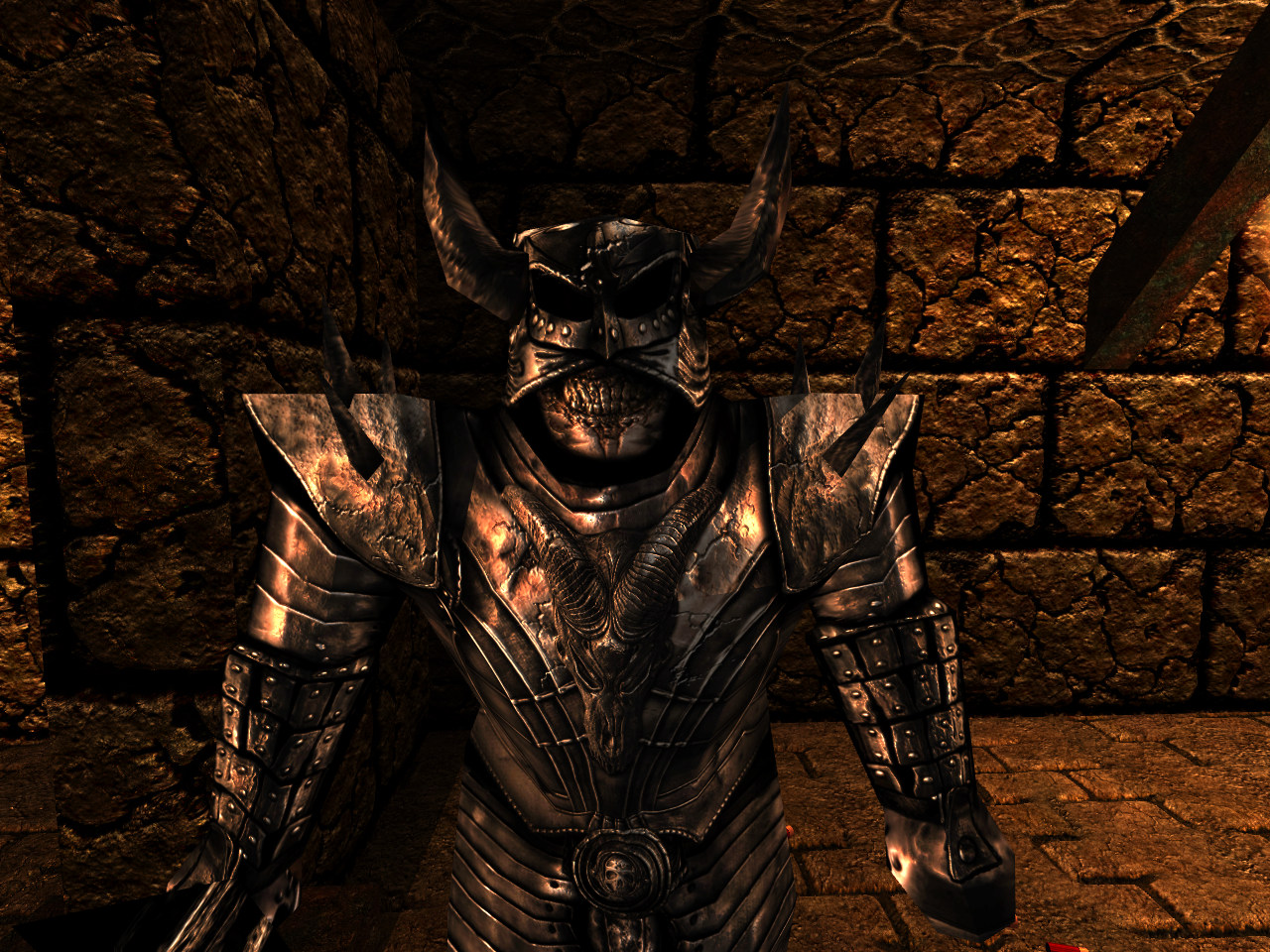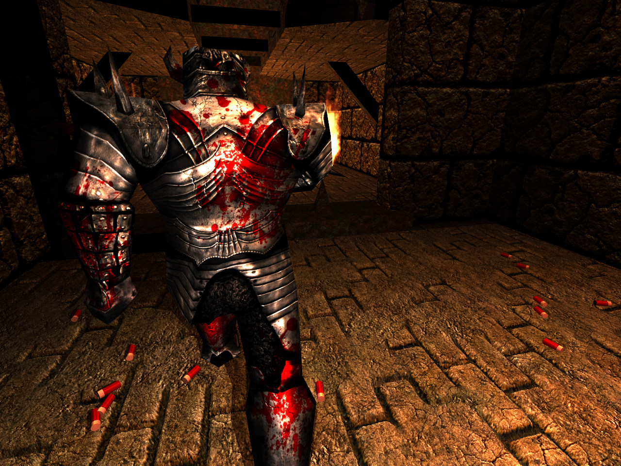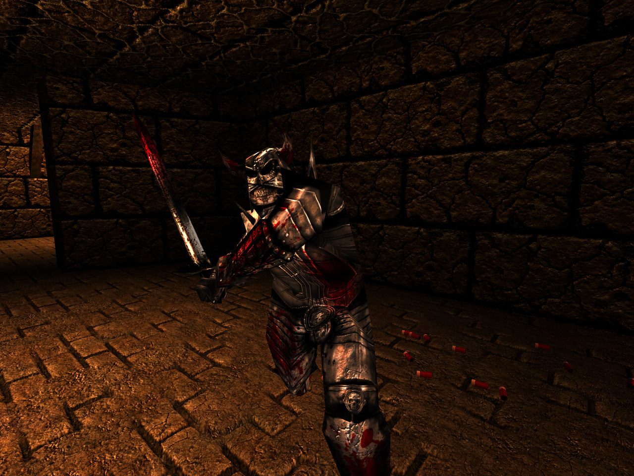 In Quake 1, a Death Knight resembles a large man in a fierce-looking, blood-flecked suit of armour with a horned helm
