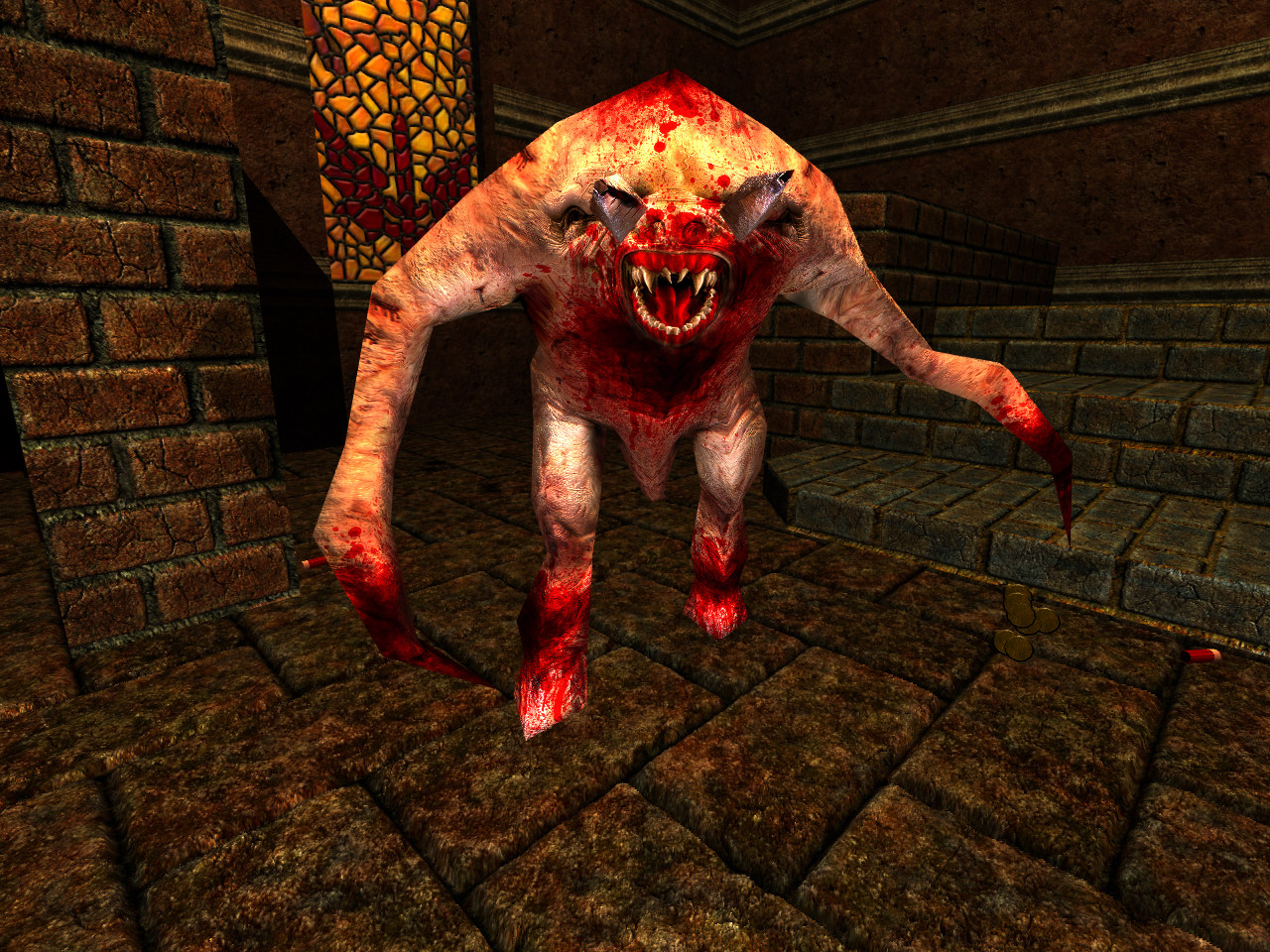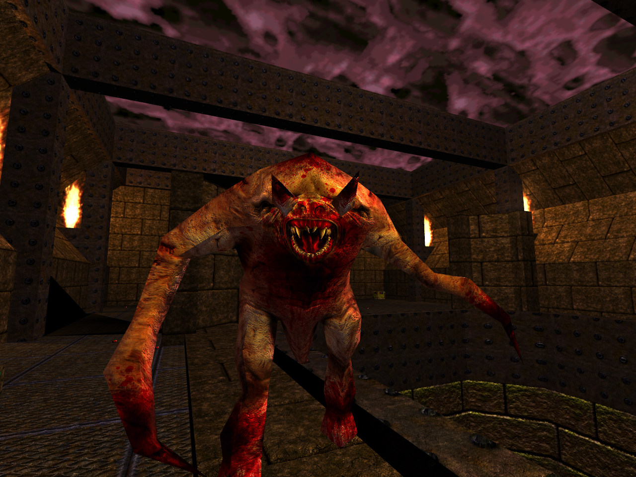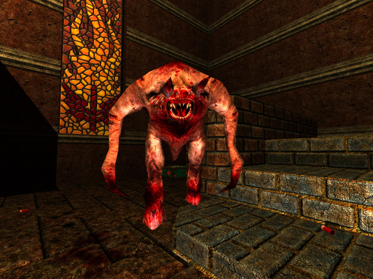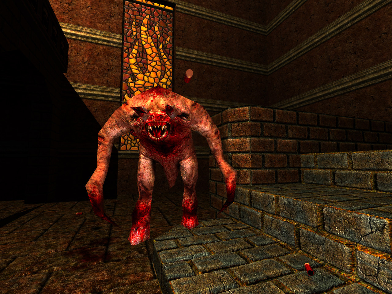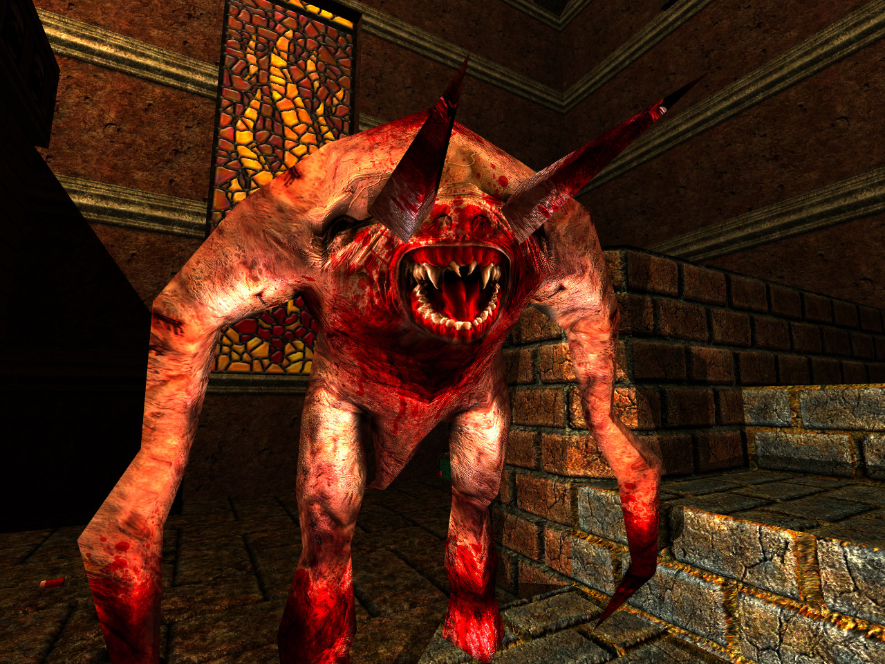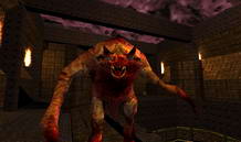 Fiends make their first appearance in The Castle of the Damned as a literal monster closet, leaping out at you while you observe the floating stone blocks. They are quite potent in their slashing, but also can take a handful of rockets. However those hooved legs should be your concern. The leap is fast and powerful (bare minimum of 40 damage) and quick to recover. Be swift on your feet, particularly with sidestepping and take advantage of its exposed back during the jump. If you can keep close enough in range, they will generally not leap, but they