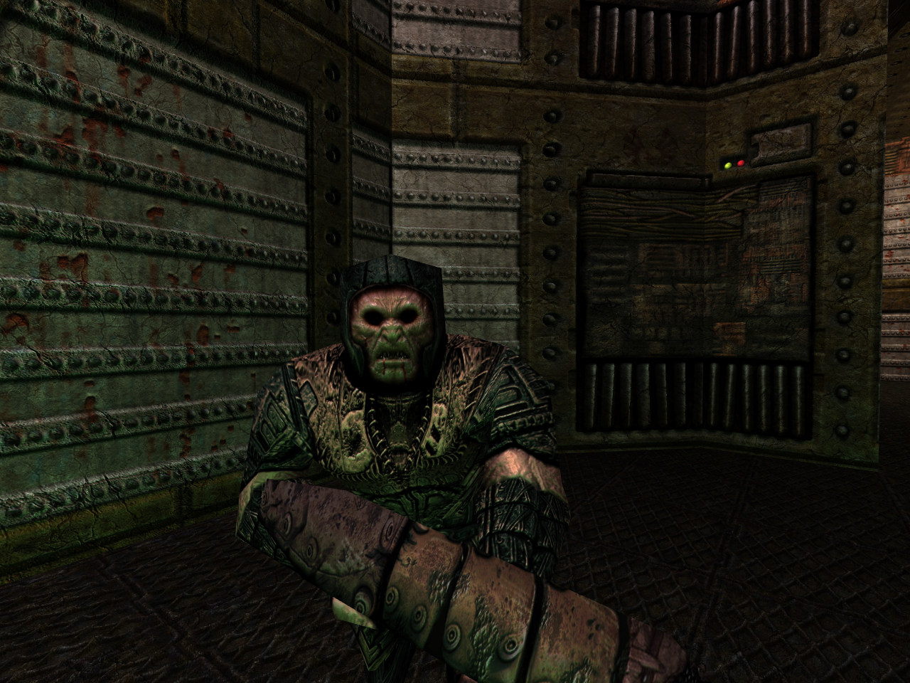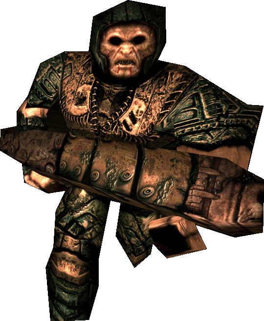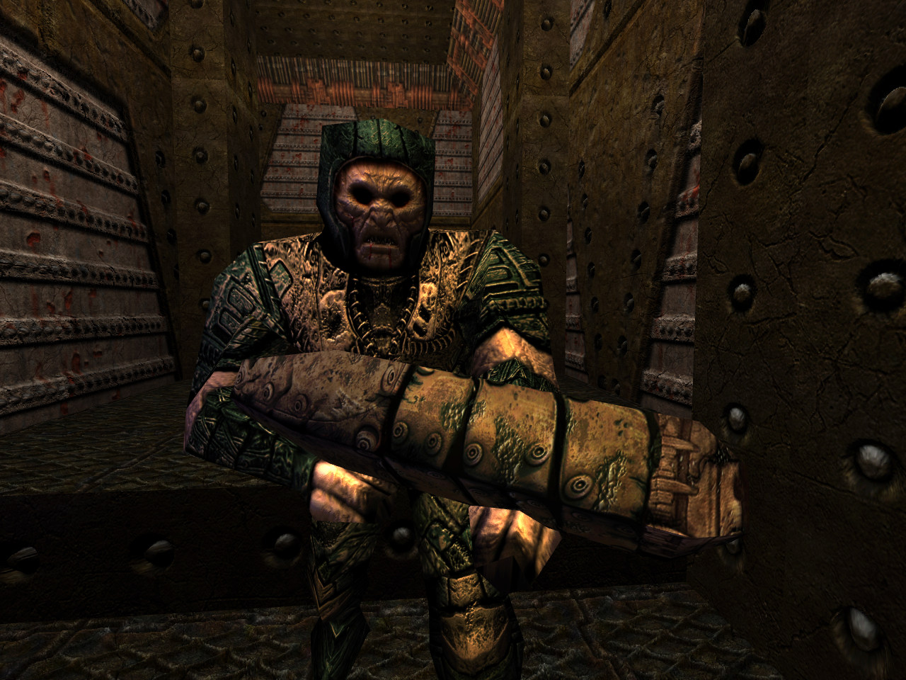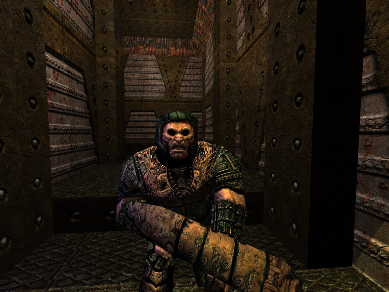 The Grunt is the first enemy you will encounter in Quake, alongside the Rottweiler. He moves fairly slowly, has particularly low health and packs a mere shotgun. Not only is his attack just a shotgun, it calls a FireBullets value of 4 rather than the players 6, and he also aims slightly behind the player. Despite these shortcomings, on death he will drop a backpack containing 5 shells, turning an ammunition profit for the accurate (or melee) player.