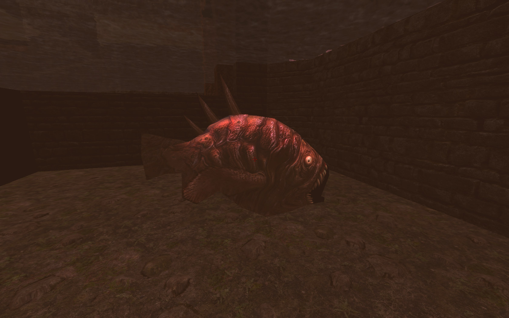 - Health to gib: In the Hipnotic pack, fishes gib when with -20 health;