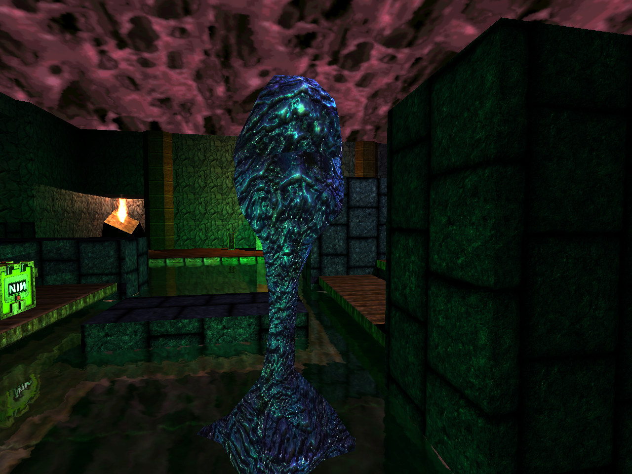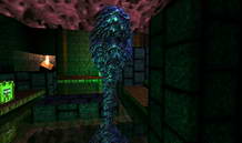 Spawn (also known as Tarbabies) are annoying little blue blobs that bounce around, ricochet off walls, and hurt you if they smack into you. They don't take long to kill, so don't fire at them unless you're at a safe distance. When they die, they explode like a rocket - and hurt just as badly. They will come after you pretty quickly, so back up as fast as you can and fire once you know you're safe. Don't bother strafing, as they have to be near you to hurt you.