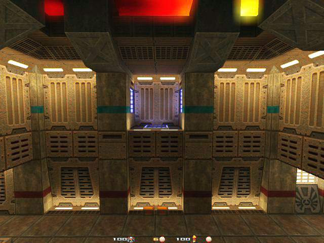 There is one teleporter that leads you to a small balcony where the rocket launcher is located. It could have added to the gameplay of the map if the teleporter wasn’t there. Players would then have to make a challenging jump to recieve this powerful weapon. Of course, any player can grab the rocket launcher with the teleporter present but this tends to become a rocket fest and takes away from the skill of the players. Another issue I had with the teleporters was that, while being chased by Darkwolf, we would get stuck in the teleporter and would have to commit suicide by blowing ourselves up to get out. Very frustrating.