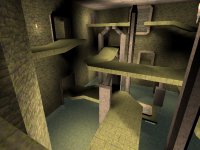 The maps all have the visual appeal made possible by the proper use of textures that are well made, and by lighting that is consistently realistic and properly sourced. Texture alignment is particularly good. The texture set is the original Quake set augmented by quite a few of the author’s own. Brush use is consistent with believable archecheral designs found throughout the episode. Overhangs have proper looking and interesting supports. Sloped roofs and the use of curved structures add interest to the levels, making the player want to explore. These levels are rife with tricks, puzzles, switches, buttons, levers and traps. Sometimes you have to press a switch or shoot a button that opens a panel so you can press a switch or shoot a button…