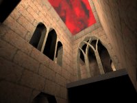 Prodigy One -Arrival, begins inside your spaceship, textured in idbase. A little exploration gets you well provisioned and you’re off on your quest to the planet below. You must penetrate a well-protected chapel, all textured in a medieval theme, to get the gold key and return to your ship! There’s one secret that you’ll have to backtrack to get.