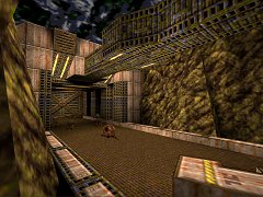 ![]() (Size: 1.2 meg. No Alternative downloads.) ![]() ![]() A collage of Tronyn's spare map bits by Mike Woodham, in a sort of Egyptian theme with some metal details. There is plenty of variety, not just in the designs which range from canyons, small annexes, complex watery rooms and large temple setpieces, but also in the theme which includes dingy styles in some places and bright clean styles in others. Archicture is pretty good throughout the map, with a fair use of details and angles, as well as larger designs like pillars and massive beams, the highlight perhaps being a large indoor arena with sandstone beams arching overhead. However, it's not coherent enough and more work should have been done harmonising the theme, for example using similar basic wall, floor, beam, and water textures would have helped a lot. The metal details don't quite work either. Also the lighting is a bit odd, sometimes fairly dark, but very bright in the outside areas, sometimes without proper shadows - again, more refinement needed. Despite the disparate origins, the map has a well connected layout, often revisiting old areas from new directions. There's only a little exploration, but a hefty 7 secrets to find, most of which use the similar small buttons - can be hard to find in a map this complex, and the secrets are very useful. Combat is pretty hardcore and, as Mike says, will provide good value for experienced players, with 136 monsters on Normal/Hard skill - a much easier Easy skill is included. Combat situations vary a lot, and some of them, particularly Ogres bombadiers on high ledges, or well placed Shamblers, provide a tactical test too. There's also a potential hair-raising underwater combat against Spawn which I personally liked. Elsewhere there's the usual gangs of medieval monsters, with the climax being in that large arena, providing a fun massacre especially if you get the Quad. There's a fair amount of ammo and health overall - it's a bit sparse at the 3/4 mark, but still enough - though little armour. Pretty challenging but balanced too. (Size: 1.2 meg. Alternative downloads: Dazsp3) Speedrun demo: 1:31 ![]() ![]() A large, diverse IKbase level. Although these strong, familiar textures are used throughout, there's a lot of variety in themes: Apart from the start and a couple of similar corridors, every room has it's own invidual sub-style. Architecture is divided between impressive outdoor areas with cool, complex designs and natural rocks, and square rooms indoors, whose simplicity is disguised with beams, pillars, interesting light details, and sometimes complex texturing. Mostly it's good but there's a large discrepancy between the best outdoor areas and the simplest passages. Lighting also varies, usually good, but a few areas are very bright for the given lighting, and a few areas are very dark - this can be annoying when enemy are shooting you from the dark. Since every possible IKBase texture combination is used, there is some good texturing but some careless texturing, particularly with the "hexagon" wall textures. There's plenty of good - occasionally great - visuals in this map, but it needed more attention to theme and architectural consistency. Another aspect reduces the coherence: The level is divided into two seperate sections, linked by teleporters, rather than all joining up "au naturel", which spoils the plausibility of the level design - and I'm sure it could have been avoided. There's hardly any exploration aside from the start, and two secrets, both very useful, I found one. Gameplay is generally good but slightly odd: For most of the map it's very steady and well balanced, later on there's a combination of a severe ammo and health shortage, a couple of awkward "hard to survive" situations, and some empty areas - why no monsters in these?? It should have been tweaked and tested more... Aside from that there's plenty of base enemy, generally in small numbers but with some ambushes and snipers to spice things up, as well as occasional monsters the provide more of a challenge later on. It all flows rather nicely until near the end - the ending itself is unusual, with some trickery to avoid a potentially ammo-less combat, as well as two exits - one leading to Dazsp1, the other to Dazsp2 - a cute touch. - - - - - - ![]() |