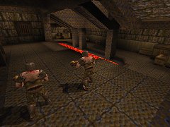 ![]() (Size: 480k. Alternative downloads: Fatal-error) ![]() ![]() Note: Since DOS Quake doesn't allow map names over 8 characters, you will need to rename this map if you play in DOS Quake. A small, compact, level in a similar industrial style to Tiddles' previous levels. The consistently used theme is: grimy concrete walls, some lava, a huge amount of rivetted metal both as trim and support beams, with hi-tech lights and metal grilles as details. With a night-time sky, the level has a heavy, oppressive feel - maybe too oppressive for some. However there is more variety in designs packed into this level, including two outdoor areas with some nicely rounded cliffs. Elsewhere subtley angled beams and corridors, and some cool designs such as the semi-circular starting area, give the level visual interest. A couple of small antennae are a neat touch. The architecture isn't spectacular, some areas needed more inspiration, but it's good and the level is well built. One prominent design feature is the layout: it's not a simple linear level, there are many route choices and most of the level can be explored freely (which is needed to find weapons). A side-effect is that you can exit very quickly, a locked exit should have been used to prevent this. Aside from the free exploration, there's also one secret, very useful to find. The gameplay also packs a lot into a small map, in particular the first half of the level can be frenetic and exciting. Plentiful base enemy are used, along with heavy support from several Ogres. Initially the route choices all lead into large groups of monsters, however there's always some cover to hide behind, and few surprises, so it's fair and fun despite relatively low-key weapons and armour. Charging straight in would be a fatal error, duck and shoot tactics being much more suitable. Later on the gameplay eases off as supplies are improved, including lots of ammo, while tougher monsters at the finish are used very sparingly. More ambushes and better used tougher monsters would have made the weaker finishing gameplay more consistent and exciting. Also, there's no skill settings, which might put some players off. Still, this level is a nice twist on an old style. - - - - - - ![]() |