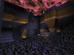 ![]() (Size: 2.60 meg. Alternative downloads: Alk11) ![]() ![]() A large, convoluted level that puts a different twist on a medieval theme by mixing copious amounts of blue textures with the normal brown/white style. It comes with a backing story that follows on from Quake itself. The map consists of many open and fairly complex courtyards, and brief connecting corridors. The layout sprawls over two tiers, and is heavily interconnected, which is only revealed when doors open to previous areas as you progress. The architecture is fairly good, but mostly rather arbitrary - there's plenty of angles everywhere, and good solid designs, but it has a random feel with few structures standing out. Perhaps the haphazard nature is intentional, but it doesn't give a good sense of place. However, there are some impressive collonades and archways, particularly later in the map, and the build quality is all good. More set-pieces or focused designs would have improved the looks. Textures are also fairly good, providing a consistent theme, with well used blue trim later on, though the blue/brown mixture might be a matter of taste. One of the rarely used rock textures is particularly nice. Lighting is fairly dark and gloomy, and sometimes unsourced. Despite the connectivity, there isn't much exploration, and 2 secrets (number obscured by the map name), the one I found was neat and useful. Gameplay is tough, relentless, and sometimes longwinded due to the amount of medium-tough monsters. Custom monsters are prominent, including Axemen, "Mordrigor" Deathknights (see Mexx8 - LOTW review), Snakemen, Centroids, and modified nailgun Ogres. You better like nails as there's an awful lot thrown at you from those last three monsters - the Ogres also jump wildly which provides a good, new, tactical challenge, and the Axemen are as frantic as usual. Monster placement, combined with the lighting, makes it hard to avoid damage from the nail monsters, so a lot of care should be taken. Weapons and ammo are liberally supplied, but health is very limited, especially in the early-middle parts of the map, which is likely to require a lot of quicksaving for many players. More health here was needed and would have given more enjoyable gameplay all round. Later on supplies improve, as does the balance, including a very fitting ending, with an escalating series of heavy monsters and several fun ambushes. Skill settings are slightly effective. The challenging gameplay means it's a map that's best to play slowly and methodically. - - - - - - ![]() |