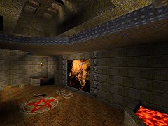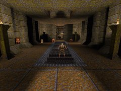 ![]() Curious, the TEF series had been generally awful up until this map, then *pow*, a huge increase in quality - which is good, since it means these TEF maps at least are high quality and fun to play. As with Wieder above, there is a mission pack link, as the two linked maps in this zip both use the Rogue mission pack, Dissolution of Eternity, monsters, as well as some mission pack and custom textures. However, these maps are conveniently in a .pak file, so you do NOT need to the mission pack to run them. Anyway, the maps, and there is a nice story behind them: Quake's forces have even defiled the heavenly realms of ancient Greek Gods, and it is up to you to stop them....what the Gods are doing is unclear, but it's a nice twist on the Quake idea. Halls of Artemis is a great metal map, as solid a metal map as you are likely to find, with good architecture, a very consistent theme, and all round good gameplay. It takes the standard metal designs, adds some nice buttresses and curved arches, and wraps things up nicely with some good details - both screenshots are of this map. There could be some improvements to the design and looks - the blue metal seems out of places, there could be some more intricate rooms, and some more spectacular architecture - but what you get is good. The secrets are cool too, plenty of them, and my favourite involves opening one secret area, hitting a hidden switch in there, finding another hidden switch, then finally finding a hidden teleporter - value for money to be sure, and this gives some good exploration. Gameplay rounds the map off very nicely, and as with the design, is as solid and Quakey as they come. There's a good monster balance throughout, some well used monsters, and plenty of good honest surprises. You get the right weapons and good armour, and there are enough varied combat situations to make it all fun. The only disappointment is the ending, which is set up to be a real climax, but with the weapon you pick up, is easily defeated by sniping tactics. Without the RL, this would have been a more exciting and appropriate ending. The end of Halls of Artemis leads straight on to Apollo's Domain, though the second map can be played on it's own (weirdly enough, I found this easier than starting with the weapons and ammo from HOA when I replayed them recently...I guess I was being really careful). Unfortunately, AD doesn't quite live up to the standards of HOA - in some of the areas where that map excels (theme and gameplay), this map is inferior. However, it is still good and worth playing. AD takes a different style, and uses a mix and blend medieval style, with some metal and mission pack textures. Although there is some good architecture and designs, such as spiral stairs and some cool outdoor bits, the theme isn't as strong, and some areas seem out of place. I do like the marble halls, and of course the outdoor bits, and if more attention had been paid to making this a strong theme of the map, I would have preferred it. Architecture is pretty good and there are some nice designs and details, again a few seem mismatched. There is a little bit more exploration than in HOA, and the secrets are up to that map's standards, which is nice. Gameplay is generally good, but there is one annoying aspect: the Rogue and custom monsters. Rogue monsters, in general, suck - HOA used the less annoying monsters, but AD uses the appalling and completely un-Quakey "Bearded Twats in Skirts" - yeah, you know the ones, nothing to do with Quake. Combine these with those pesky spiders, which are okay, but I don't like their blatant use of other monsters sounds and attacks, and you have monsters which don't really spoil the gameplay, but do noticably detract from the feel of the map. The other Rogue monsters used in this are okay, and provide a bit of spice, especially at the end. Aside from that point, the gameplay is good again, quite a bit harder due to the closer design of the map, and some nasty surprises. However, it keeps the level of challenge reasonable, and after the first map provides a fitting second, though the ending is still on the easy side if you are cautious. With a better theme and less crap monsters, this would have been better, but it, and indeed the whole pack, is still good as it is. (Did Easy speedruns of both maps in 1:37, including HOA in 1:00 and AD in 0:37.) - - - - - - ![]() |