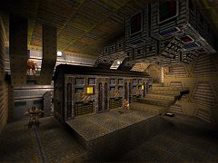 ![]() Note: There are two seperate maps in this zip: "Timebomb" and "Salvation". Note: These maps require the Hipnotic mission pack, Scourge of Armagon, to run. A pretty much unknown level this, and it's rather interesting. Made as a job application for Ritual, it's easy to see why the author got the job - although he says claims it's unfinished, the map has a pretty fantastic design and style by any standards. It's a base level, but with a unique and ultra detailed style. So you get pale blue walls, metal floors and doorways, absolutely loads of industrial touches and "pseudo-real" details like fans, proper lights, computers, pipes, ducts, consoles....the list just goes on. In fact, if the author crammed any more detail into this map, it would explode and leave gooey blobs of detail everywhere. This is the most distiguishing feature of the map, and in every single area there are more than enough details and designs to catch the eye. When combined with an interesting design and a very attentive use of angles, you get a highly intriguing map, that looks little like any other base map. In short, the architecture is superb, my only criticism is that the missiles look a bit cheesy and a few textures look a bit odd, but those are minor points. There is another more important criticism related to the architecture however, and that is the potential of the details and designs for loads of fun secrets has not been exploited. There are no secrets and only a couple of hidden items in the map, but there could be a huge amount of stuff placed in hard to reach areas which would lead to some fun exploration around all the map's designs - it's a pity that this is lacking. In fact, there is no real exploration in the whole map, which is at odds with it's style. Gameplay, like the architecture, is original: you get supplied with all the weapons you need at the start, in a pseudo-real kinda way, and only get ammo from troops and a couple of mega health boosts in the map. This does mean that the gameplay is fairly consistent throughout the map, though there is a major fight part way through. However, with a bit of exploration this fight can be made disappointingly easy, and overall I found the map to be too easy overall. This is mainly due to the amount of ammunition you receive for the bigger weapons - with my double shotty orientated playing style, I ran out of shells, but was loaded to the gills with rockets and cells by the end, which reduced the challenge a lot. So the idea of getting weapons at the start needs some more work, I feel, with more focus on the weaker weapons rather than the strong ones. Of course, the firepower you get makes it quite fun to wade through more of the monsters (including the cool Hipnotic ones), and there are some entertaining situations. The ending of the map is interesting, a non-combative race against time, in which you need to be pretty damn quick. However, if you fail this race, nothing at all happens except a silly message - a bit stupid as this reduces any urgency or excitment, and this is one case where an instant death explosion is needed! But although there are some gameplay flaws, the style alone makes this map worth checking out. Speedrun demo: 1:03 This is the other map in the zip, and is in a completely different style to Timebomb as far as looks goes, and a completely different style to everything as far as gameplay goes. It's a very well built metal level, with great gothic details and good architecture. However, the level is completely orientated around traps and "trick" gameplay. I lost count of the instant death traps, but basically working around them makes up the gameplay, with little real fighting. If you like this sort of thing, then you should love this level - and you should seek professional help. However, I do not consider it to be worthwhile as a single player level - but since it's in the zip, you might as well download the speedrun demo I did, so you will at least get some value from the map. (Did a fun Nightmare speedrun in 1:03.) (Size: 2.58 meg. Alternative downloads: Tefdbl3 / Tefdbl3) Speedrun demo: 1:37