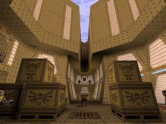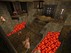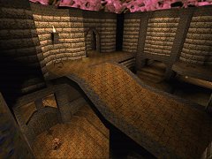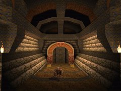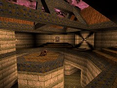 ![]() (Size: 3.55 meg. No Alternative downloads.) Speedrun demo: All demos in one zip Note: Ih1m2 and Ih1m4 were previously released and reviewed seperately. The reviews have been edited to take into account their position within the pack. Overall review: Most maps don't have much exploration, however they all have useful secrets that are well worth finding. Gameplay is challenging all the way, each map is swarming with monsters, and some situations can be very hard to survive first go. Though health is fairly sparse, ammo and weapons are in reasonable supply, and as the maps progress they get more fun. There's some exciting ambushes and monsters lurking in tricky places, and a cautious approach is best. Skill settings are in effect in case it proves too tough. Speedrun demo: 0:14 ![]() ![]() In the grand Id tradition, a base map to start, and indeed it's a traditional base map, with brown and white textures held in place by lots of rivetted beige trim. The map looks good in this style, with plenty of angles and details in all areas - however the map is really a series of rooms and there aren't any spectacular architecture set-pieces to catch the eye. Also, the Id base textures can seem ugly in comparison to some more recent textures. It's pretty linear but enforcements are well used when backtracking - all areas have plenty of monsters. There's also a good 5 secrets, well worth finding since combat provides a serious challenge for a base map, due to modified enemy: Grunts with grenades, and Enforcers with rockets, nails, or lightning. These enemy have recoloured Id skins - slimy green for grenadiers, dark chestnut for rockeeters, and subtle grey for nail / lightning p1mps. This fits in well with the standard enemy, and is much better than a lame and illfitting attempt at custom skinning. They dish out a fair amount of damage - especially the lethal rockets - forcing the player to take more caution than is normal in a base map. There's a couple of nasty situations with these harder enemy, including an arduous start, but overall, with the supplies given, the map is fairly well balanced. Speedrun demo: 0:39 ![]() ![]() The second map is a well detailed, smallish, metal level, with the usual theme of grey stone textures, metal trim, runic details, gargoyle heads and lava. Angles are well used throughout and the runic sections have nice details, especially rows of cross lights set into grooves in the walls, and cool teleporters. Some more "industrial" areas are plainer, and the lighting can be a bit too bland or bright in places, but it's mostly okay. The scale is smaller than normal, not cramped but quite tight, with little exploration, but one of the secrets is in a nice place. Gameplay is quite good, but definitely challenging, though supplies from the previous map make it more reasonable. The map is stacked with medieval monsters and in the first half of the map the small size can work against the player, giving him little room to move when facing some tricky ambushes. The amount of enemy certainly makes good use of all the map. Later on it gets more enjoyable as you get better weapons, leading to a good, solid ending, with lots of monsters. Speedrun demo: 0:19 ![]() ![]() The third map is a larger medieval map with nice sandstone wall textures, wooden ceilings, and lots of metal trim . This is a strong theme - the sandstone making it quite unusual - but the limited textures get a bit repetitive. Architecture is varied, but all very solid and angles are very well used to enhance the walls, ceilings, and buttresses - the cool looking central hub being a good example. The design is fairly complex, being centred around a hub with various offshoot areas, which leads to a pleasingly non-linear progression: You need two keys to exit, each one is found in a seperate offshoot area, and you can choose either route and/or backtrack to the hub at your leisure, and there are some useful secrets too. Gameplay is tough but fun if you play cautiously, with plenty of medieval monsters, often lurking in wait or attacking from all angles, and a few traps to deal with. There's also an *unfinished* custom monster, a hulking creature with a nail gun, good to fight and well used in the map, but it has movement problems and only a basic skin [Side note: the proportions of this monster look as it it would fit really well into Quake with the right skin - any takers to finish it??]. The gameplay is balanced for health and ammo. Speedrun demo: 0:35 ![]() ![]() The final map is a spacious, medieval map with an interconnected layout reminiscent of deathmatch map design. The theme is dirty cream block textures and a dark brown tiled floor, with occasional wood ceilings, all held in place by lots of heavy metal trim. More variety would be better as the limited textures and continuous trim can get a bit repetitive. Architecture is pretty good, a fresh use of angles, like the undulations on the wall, giving a vague castle-like feel. The starting area is excellent, with complex girders stretching over large angled hallways, and the more complex rooms elsewhere are good, but some areas are a bit dull. Lighting is good and quite atmospheric. There's only a bit of exploration, the well connected areas are shut off for mostly linear gameplay. Gameplay has been beefed up from it's individual release, and is very good overall but too hard to start - monsters have been added in some tricky ambushes, and it's still an uncomfortable distance to the first health. After that the interesting layout makes for good combats and a continual but fair challenge. The open size makes it easy to dodge monster attacks. There's Ogre barrages, monsters lurking in darkness, and some cool surprises. Ammo and health are in fair supply too, and though the ending isn't a big climax, the map is good finish to the unit. - - - - - - ![]() |