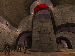 ![]() (Size: 6.5 meg. No Alternative downloads. Direct link: Czg07) Speedrun demos: Czg07b in 0:52 and Czg07c in 0:42 ![]() ![]() Note: These maps require a reasonable standard PC to run, with GLQuake recommended, and you may need to allocate more RAM to Quake - see the included text and/or Help page. An awesome 4 map unit, with very distinctive level design, layout, and gameplay. It consists of a start map and 3 enormous, consecutive, single player maps. There's a story, and an ending text, that are just plain weird, while the connection between the levels is very smooth. The start map is a hellish, organic/industrial building, floating in space, reminiscent of Zerstorer's more disturbing moments, the bizarre setting and designs are something to admire, like the cool "teeth" of rock you initially jump across. The first two main maps are Q2-textured industrial bases, with subtle golden/beige walls, lots of grilles and ribbed trim, dark rocks and caverns, and hi-tech light details. The final map is a Q3A-textured gothic bastion, rather colourful with grey stone or turquoise walls, purplish metal beams, a very nice rock texture, a lurid red sky, blood pools and cool bloodfalls (with their own eerie noise), and skulls and runes as details. All maps stick to their theme precisely, with the second map subtly blending the base into caverns and then a gothic temple. The strong styling of all the levels, with their original architecture and complexity, gives them a good atmosphere of awe and discovery. ![]() ![]() Architecture is spectacular and expertly built: It eschews small intricate designs and lots of details, in favour of massive structures, excellent curves, and fantastically complex layouts. Buildings, courtyards, and complex rooms are all built into sections of well angled natural rock, and all maps feature water or blood. Designs are huge, heavily built, and complex: Tower-like sections jut out from corners, walkways circle around courtyards, supporting beams arch overhead, and there's always exciting designs to catch the eye. Curves are everywhere, enhancing almost all structures via arches, bowls and domes, with good clean textures that show off the curves well. A couple of weaknesses: The lighting is sometimes a bit bright or flat - more contrast would enhance the atmosphere. And there are a few rooms and corridors that are blocky or simple compared to the more impressive areas elsewhere. But that hardly detracts from the general architectural standard, which is excellent, and as good as anything seen in Quake. However, the higher than average system requirements may be a serious problem for a few players, though in the year 2001 almost everyone should be able to run maps like these. The map layouts are particularly impressive, due to their complexity and interconnectivity, which sometimes leads to a tremendous amount of exploration. There are several sections where you'll find two or more seperate route choices, so you can explore or backtrack at will - eventually reappearing somewhere you recognise from a different direction. The second map is the most interesting for such exploration, but in all maps you progress through familiar areas via different routes, giving an immersive feel. However, there's an obvious problem with this otherwise exciting exploration: Often you can fall or jump down into previous areas, and have to walk a very long way to get back. A few extra doors and lifts do open to alleviate this, but more would have allowed quicker navigation as you progress. There's a few secrets in each map, generally useful and fairly easy to find - I'd have liked more secrets as there's lots of places for them in maps this size. ![]() ![]() Gameplay is great, and distinctive due to the huge amount of monsters and the exceptionally fair gameplay balance. Monster counts are shocking: 230, 206, 194 on Hard skill!! Amazingly, combats are rarely crowded and never overwhelming, with monsters well spread throughout the maps. Large gangs are extremely common, but there's either plenty of room to move, or a good escape route, or you can spot them from a distance. Also, they're susceptible to explosive weapons and infighting - a brawl between 6 Fiends and 5 Deathknights being a great spectacle. The base maps are focused on sniping and using cover well - charging into rooms of Grunts and Enforcers being inadvisable. This, like in Apsp1, gives a great, infiltrative feel. The gothic map allows a less cautious approach, with better weapons and more open areas. The balance in these maps is really impressive - there's appropriately plentiful caches of ammo, adequate but not excessive health, and the combats are always very fair, even the surprises and shocks (some very good ones) are well set-up to provide excitement without frustration. The challenge comes from keeping calm and playing steadily, rather than dealing with item shortages or nasty situations. Skill settings are in effect too. Unfortunately, the ending is, well, missing - the last map simply finishes with a reasonable ambush, but given what's gone before, the lack of an epic combat is really disappointing, it could have been the crowning achievement on otherwise "near perfect" maps. Even so, with 2-3 hours solid gameplay in some of the greatest maps around, this is an essential release. - - - - - - ![]() |