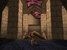 ![]() (Size: 1 meg. Alternate download: Lthsp3.) ![]() ![]() A medieval level in a grey stone walls / blue brick floor / rivetted metal trim style, which follows directly on from Lthsp2 (review) and Lthsp1 (review), and is an improvement for design and architecture. There are still some simple rooms, but the layout and room connectivity is more complex, and there are some cool designs - specifically arches and spike-tipped pillars - to liven up the theme. This arch/pillar/spike design is used continually throughout the map, and is quite spectacular where it forms collonades or a square spiked tower. Along with arched doors and small arched windows, it gives the map a strong medieval feel. Also used are some nice metal trim texture details on the walls or ceilings, again adding interest to otherwise blank spaces. Lighting and sounds are good too. The downside to the cool arched designs and the good connections between areas, is that r_speeds get noticably high in the upper sections of the map, so it may run slowly for some players (and gives greyflash in software). Another issue is consistency: some of the plainer areas retain their boxiness and definitely need a design boost so they match up to the style and feel of the better areas. No exploration, but 3 secrets, including a nicely placed, if useless, Megahealth - other such secrets, or items, that use exploring around scenery would be good. Gameplay is hard: You'll need the weapons following on from Lthsp2, as there are a lot of monsters, often attacking awkwardly from multiple directions, right from the start. Monsters are limited to Knights, Deathknights, Ogres, and a new "Crossbow Knight", complete with crossbow model and firing animations, which fits well into the setting, though it needs a new skin. Combats include gang attacks and crossbow snipers, and with limited ammo early on, the map is best played with a lot of caution. Some players may relish the challenge, but there are flaws with gameplay balance: Constant harrassment by Ogres around the top of the map gives a rather unappealing choice of killing them initially and running out of ammo, or leaving them to bombard you in most areas until they can be faced up close. The ending, despite a good ambush, is no harder than the rest of the map, thus lacking any climax. And placing a Perforator partway through is odd, given you have one from Lthsp2 - it would have been better replaced with the barely used Grenade Launcher that's at the finish. The few surprises are the best balanced aspect of the gameplay, and skill settings are present. - - - - - - ![]() |