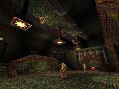 ![]() (Size: 810 k. Alternative downloads: Czg03) ![]() ![]() Imagine a current top mapper travels back in time, joins Id when they're developing Quake, and makes E1M3 and E1M4 in one map using their own superior mapping talents. And this is what you get: A large level with a very traditional medieval theme and atmosphere, but also a very complex overall design and some cool, stylish architecture. The theme is well excecuted and consistent throughout, but there's also plenty of variety in designs. The layout takes Id's traditional connectivity to the extreme: all areas are complex, diverse, and connected at many different levels, water is common, adding an extra dimension to the map, and there aren't many mere "rooms". Indeed the layout is more impressive than the architecture itself, which hasn't been pushed as far by current standards. There are a few great designs and the architecture is good throughout the map, though a few areas are quite simple and would have benefitted from more detailing. The main circular towers, crowned by blunt spikes, are definitely a cool feature, there are also some attractive cavern like sections. The big designs are well angled off and have an appropriately solid look, while lighting is well sourced, gloomy and atmospheric, but a bit on the dark side. A very interesting take on a classic style. The convoluted layout gives some exploration, particularly around water, though the player is forced to follow a set route overall. There's also a varied 7 secrets, which are mostly reasonable to find and useful but not essential. You also might need to hunt around for some items. Gameplay is solid and challenging, and will test players' tactics and endurance, with the numerous medieval monsters often carefully placed for maximum efficiency. In particular, Ogres and Deathknights are positioned on various ledges where their attacks can be really challenging. Other monsters are more straightforward to deal with but they still give continuous fighting, and only weaker weapons are supplied. The map rewards careful sniping, and is quite reasonable and fair if, and only if, you're patient with all situations. This applies to the sustained ending too, a semi-arena style combat in an attractive position. Unfortunately that same complex layout does lead to some odd situations where you'll have cleared out some areas, with difficulty, earlier on in the map, and they're empty of monsters later. Also, although skill settings are present, some players may find the gameplay a bit too gruelling in places. (Size: 760 k. No Alternative downloads.) ![]() ![]() A medium sized level in an industrial style. It uses a distinctive combination of small blue-green brick textures, heavy rusty metal trim, set beneath a blood red sky. This theme is consistent through the map, and the architecture also has a consistent theme, particularly the inset wall arches, and good usage of lights, pipes, and vents as the main details. This strong style gives the map it's main visual interest, as most of the architecture is decent but rather simple: straightforward corridors and rooms with some good angles and details. There are some more interesting areas - the small outdoor canyon is nice, and the ending is properly impressive, if rather seperate from the rest of the map. Lighting is quite good, though occasionally ill-sourced, and build quality is good throughout. The ideas and style are certainly here, but this map needed a more perfectionist approach to ensure all areas were kept visually exciting. Due to the simple overall design of the map, there's no exploration. There are 4 secrets listed, two of which required a grenade jump. The other two, if they exist, must be incredibly hard to find. It would be well worth hunting them down, as sparse supplies are a prominent feature of the gameplay, which is tricky and occasionally awkward. Medieval monsters are used, not in huge amounts, but the smaller scale of the map and some of the monster placements makes them quite challenging. There are a few ambushes in a similar vein, which can be hard to survive first time unless you guess what to do. Weapons are kept low key, and although ammo is in reasonable supply, health and armour are sparse so care must be taken. The same applies to the ending - although you're better equipped at that point, it's a good climax with a tactically interesting finish. Unfortunately skill settings are effectively ineffective apart from a couple of better items, so if it's too tough, tough. - - - - - - ![]() |