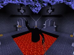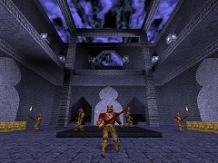 ![]() A somewhat unusual map in that it uses the Ikblue textures, until now, only Ilkka's original Ikspq2-4 series has made good use of them in any map. A pity since they are lovely textures, and blue maps are sadly rare - although this map doesn't look as good as Ilkka's originals (what does, eh?), it still makes fine, consitent use of the textures, with plenty of decent architecture and designs, and features especially cool lighting which throbs menacingly between dark and light, and adds atmosphere. Now this map is actually quite unusual in design and gameplay - it is split into 4 smaller maps, in which you must collect 4 runes, and defeat the final enemy, while facing a series of short but brutal battles on the way. You are usually thrown into the midsts of quite a lot of monsters in simple and inescapable arenas, but are supplied with huge amounts of ammo and armour to survive - this is quite a nice idea, you run around like a headcase, pouring nails and grenades into everything in sight, without any thought for tactics or cunning, and you usually survive easily, However, although this is fun, I feel these maps didn't go far enough in this aspect - sometimes it feels a little too easy for this style of gameplay (I am usually cautious myself), and I would have preferred it with more monsters, maybe even a lot more monsters and a couple more Quads, so it would have resulted in truly brutal, and slightly more satisfying gameplay. As for the ending - well, even on Hard you get the 666, so really it is a bit pointless. Still, the maps overall are definitely fun, and have a cool atmosphere too. (Did Easy speedruns of all 4 maps in pretty quick times Map 1 in 0:16, Map 2 in 0:16, Map 3 in 0:06, Map 4 in 0:13, all in one .zip, also on the Demos page.) - - - - - - ![]() |
