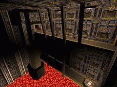 ![]() Junk - rather an appropriate name. Not because this level is a pile of junk - it's actually rather good - but becuase this level has a certain haphazard, cluttered feel to it, enhanced by the large numbers of pipes in certain areas, and in particular the unusual textures for a base map - instead of the usual beiges and off-whites, blues, browns and industrial metal textures predominate. The overall effect is not displeasing, it gives the impression of the place Grunts and Enforcers go to holiday to when they get bored of the cleaner base styles and fancy something more grimy. Unsurprisingly architecture is very varied, though the theme is kept consistent. There are no really spectacular rooms, but there is plenty of detail (both functional and purely visual detail) and some cool industrial structures that are quite impressive. Gameplay is good, in a typical base style, with some fun surprises - there are also some neat touches on the way, such as the room with the giant pendulum thingy. However, the gameplay starts a bit tricky, and as is common in custom levels, doesn't really build to an appropriate climax, though for the most part it is balanced and fun. The only other flaw relates to the aforementioned "junk" style - while most individual rooms have some vague purpose, the level as a whole doesn't really go anywhere - more coherency and even a minor plot would have helped - and the end, which could have been very cool from it's basic idea was a bit dissappointing. Nevertheless, this level is worthwhile overall. - - - - - - ![]() |