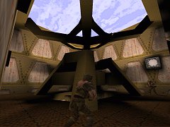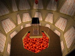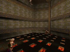 ![]() Aaahhh yes, Mr Jones, do come in, Doctor Enforcer is ready to see you now..... Hehe. Well, it's an unsual name for a map, and in general this map doesn't really adhere to any strong medical theme, apart from one rather amusing area that contains the gold key. This is a standard base map, with a few unusual touches, most noticably the use of lava, and in particular the use of the lava balls which are triggered to fly off to great heights, which gives a rather surreal feel. There are some nice architectural touches too, such as the rafter designs shown, the cool truncated circle doors, and a nice ledgey outdoor bit (not too keen on the square walls there though). It's always cool to see original touches like this, however, there are some dodgy architectural aspects: the corridors between areas are rather plain, some areas lack the attractive details (compare screenshots above), and most corridors are noticabley dark, even pitch black in places, which could be atmospheric, but I found it a little irritating with Grunts shooting from where you can't see them. Overall the map does have enough original ideas to keep your interest though, though it would have been better if all the map had been to the standard of the more detailed areas. Gameplay is as you might expect, in the decent and fun base style, mowing down plenty of Grunts with your double shotty. However, there is one big flaw, not to do with fighting, but under the gameplay criteria, and that is getting out of the first room, it requires you to shoot a switch which, while in clear and open view, has no real indication it is a switch (though it does actually appear as a proper switch after you activate it). Although this is not a serious problem (just hit everything is sight with the axe!), it's a bit careless and could prove frustrating. Once you are past this little obstacle, it's all fun, and the quantities of enemy and sparcity of health give it a nice challenge for a base map. There is also a useful Quad that is placed in a funky position requiring a thoughtful jump to reach, though unfortunately there are no other secrets. As is often the case, the gameplay could have been more climactic at the end, and the aforementioned "doctor" themed area had an obvious and cool idea that wasn't implemented. But overall, it's a fine, fun map. - - - - - - ![]() |