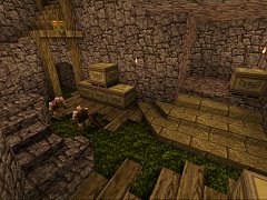 ![]() In turn, you're making us fucking hostile Named after the notorious Pantera track of the same name (or is it the DJ Skinhead gabber version on Industrial Strength?!?), and indeed the map author, the prolific J.F.Gustafsson, has set the level up so it will play that very track if you have the Vulgar Display of Power CD - ain't that nice =). There are certainly some hostilities going on, even by Quake's standards - once when I played it, I even saw two Ogres fighting each other, a rare occurence indeed. Anyway, the map: if you are familiar with any of mister Gustafsson's later and better maps, then you will recognise his trademark styles here - a roughly medieval basis, with crates and elements of base thrown in, along with great touches such as decaying bridges, collapsing walls, and interesting use of natural terrain. All are prominent and pleasing in this map - however the "set-piece" of the map, a large, very vaguely Sphinx-like construction, despite it's size and position, was somewhat disappointing - it's design is curiously unimpressive, it doesn't look as malevolent as it should, and the texturing is bland....a nice idea, but weakly executed. Elsewhere in the map, the architecture is less spectacular, but due to the styles mentioned above, interesting and detailed. There is much variety in the rooms and designs, from large outdoor bits to winding semi natural caverns and crate filled alcoves. However, along with the detailing, this does cause a problem - the level can run slow in places. It's not too bad, I was getting 18 FPS at the minimum, and it didn't signifcantly affect gameplay, but it is noticeably less smooth than most good maps. Progression through the level is linear, though it is mostly centered around the aforementioned set-piece, which you will see a lot of. Happily, the secrets are useful, varied, and usually interesting to find - my favourite was the MH, just the sort I like. You will find the secrets (except the last, maybe) a boon in this map, because the gameplay doesn't relent much - there is always plenty of enemy in your way, and often popping up from difficult positions. Taking care and relying on the trusty double shotty initially will reap benefits when you start facing tougher monsters at the end, and the final room has a rather unusual layout that tests your balance and reactions. Despite this, and a nasty little trap (explore before you shoot) the level isn't too hard and it's fun to play, with a good balance and a good challenge. But you might face some problems with a low end PC in places, you have been warned. - - - - - - ![]() |