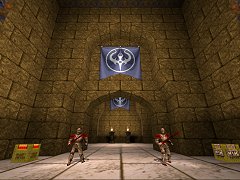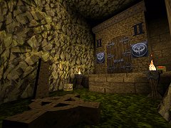 ![]() It's yet another map from the veritable map machine that is J.F. Gustafsson (expect to see a few more in coming weeks), and although many of his later maps are comparable in quality, this is my favourite, for it's style and sheer class. It's a medieval, well, a medieval something....a medieval *place*, that uses some of J.F.s typical styles, combined with some new semi-gothic touches to give a unique and capitivating flavour. In quite a small map, there are many different elements competing: dank caverns, serene pools....of blood, proud medieval hallways, decaying arcania. All of these are individually excellent touches, and mostly they blend seamlessly and work very well together, though in a couple of places better textural matches would have been better - such as the first large cavern would have looked better in the grim grey rock found elsewhere, and a couple of ceilings seemed to clash slightly. Overall these are minor details, and the general style of the map is delightful. The architecture is superb - while containing no major set pieces, it is full of interesting, well designed, and attractive areas, in which even the smallest section has something to offer, often enhanced with fine details such as flags and arches. Progression through the map gives you occasional decisions with some minor exploration, and you end up fulfilling various tasks and trekking back and forth through the map - with monster "reinforcements" making good use of the space. Monsters consist of medieval monsters (guess what they are!) backed up with a satsifying amount of "real" monsters - of which some are used very well - particularly the Vore infestation (they can be awkward buggers) and the Fiend hole (which is a sweet piece of work). Elsewhere the gameplay is fine throughout, though sometimes it can be strangely less brutal than you would expect - more in-yer-face fighting would have provided more excitement (within reason, of course). This is not to say the gameplay is poor - it's very good, but in places doesn't capture the true violence of Quake. The gameplay progresses smoothly to the end, with some minor climaxes, variety and fun. The end game is really well designed, a unique style and fine finale - but I found the message somewhat spoiled it - ignore what it says and you will find a vicious and worthy climax! Ummm....or maybe a painful death =). A very stylish level that is highly recommended. (Did an Easy speedrun in 1:16, also on the Demos page.) - - - - - - ![]() |