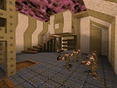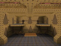 ![]() Dum da dum...yet another base map!! Except this one is different, in that it's *not* different...instead of all the wild base variations we've seen, this just uses Id base textures, and standard base style designs. Well, and a few aberrant monsters, but don't worry about them =). As far as standard base designs go, this map is pretty good and interesting - predominant throughout the map is heavy usage of beige riveted girders, well used and well angled. This gives a solid and detailed look to otherwise simple rooms, and is used consistently throughout. Room designs are fairly simple (if well detailed with lights and stuff), with a couple of exceptions, and a few more places in rooms to explore (like behind crates) might have been nice. The textures are used well, although the beige can be a bit repetitive, there are some varied textures used, and some nice corridors. Overall the architecture isn't special, but it's fairly detailed, interesting, and well made - and the girders only hinder movement in a couple of places. The layout of the map gives essentially linear progression, with some backtracking - when you backtrack, there's usually some more enemy in your way, which is always nice. One disappointment is the lack of secrets in the total score - there are two areas that are very obivously secrets (and one is bloody hard to get - any ideas how to get the red armour *without* a grenade jump, please email me and you'll get mentioned as usual). Both these areas are useful, and indeed there is another area that could have had a secret item in AND plenty of areas under the ramps throughout the map that could have been made into secrets. Secrets are fun to find, and add interest to exploring the map, so it's a pity not to have any in. Gameplay is good, the start is nice, and from there it progresses fairly consistently, with a good balance of troops and weapons - though a couple of areas seem a bit empty. The errant monsters do spice the map up in places, and there are some nice touches, like the place where you get the grenade launcher, and the massed attack at the end of the wind tunnel. The ending is fitting, but with the super nailgun, it is too easy, and the map would have been better without this weapon. Two minor annoyances about gameplay were the amount of damage the lift does if you get trapped against the edge, and the poorly marked damaging bridge - although the red light is a subtle warning, placing the lights ON the bridge would have been better, and looked more like a dangerous bridge too. Unfortunately, there is a bug with this level that could exaggerate these flaws if they damage you enough: the saved game function doesn't seem to work, it just gives an error message and refuses to load. This is careless and the author should have fixed this. Aside from this, it's a fun and very respectable level. - - - - - - ![]() |