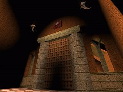 ![]() Another level that is very dark and atmospheric, another level that uses a real life� theme quite effectively, but also a level that is completely different to Fromhell. This level is set in a "haunted" cabin in a dark and eerie forest, and of course, you are exploring it at night - when else =). Although Quake doesn't do forests very well, the author has cunningly made the forest areas very dark to cover up these limitations, and the effect is fairly convincing if you don't look to close at the textures. It's certainly atmospheric again, with the darkness and cool night sky. The architecture in the forest is, well, sort of foresty, with some tree trunks and a foliage canopy, and a surrounding "wall" of impenetrable trees - kinda cutting corners but the best you can do in Quake. The cabin is plain and quite cabin-like, with some natty real life� stuff inside, and a more wholesome underground area with fetid water and stone, as well as some good details like pipes, lights and skylights. There's nothing spectacular in the level (though actually the broken bridge at the start impressed me - it looked like some monstrous metal rib cage, and I'd like to see more designs that striking in maps), but it all looks fairly good given what it's depicting. Again, the dark atmosphere and good use of monsters enables the theme to sit well and not clash with Quake's gameplay - after all, Quake has undead waiting to be used. As you might guess, Zombies are prominent in this level, but also Scrags, Ogres and some nastier monsters feature. The Scrags are well used throughout, popping up in rather awkward places and coverless areas, making them varied and interesting to fight. Other combats are a bit less effective but still fun, and sometimes monsters are used close up quite well (though other times the cramped sections force you close up). There isn't really a climax as such, and the "big" combat is too easy due to it's set-up, though up to that point the level progresses nicely. Nothing really bad about the gameplay aside from the easy end, but it could have been a bit more exciting. Again, a good and worthwhile level, though it would have benefitted from a bit more attention to detail. - - - - - - ![]() |