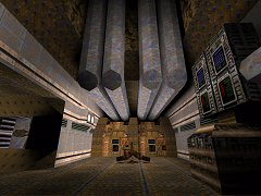 ![]() Note: There are two seperate maps in this zip: "Timebomb" and "Salvation". Note: These maps require the Hipnotic mission pack, Scourge of Armagon, to run. A pretty much unknown level this, and it's rather interesting. Made as a job application for Ritual, it's easy to see why the author got the job - although he says claims it's unfinished, the map has a pretty fantastic design and style by any standards. It's a base level, but with a unique and ultra detailed style. So you get pale blue walls, metal floors and doorways, absolutely loads of industrial touches and "pseudo-real" details like fans, proper lights, computers, pipes, ducts, consoles....the list just goes on. In fact, if the author crammed any more detail into this map, it would explode and leave gooey blobs of detail everywhere. This is the most distiguishing feature of the map, and in every single area there are more than enough details and designs to catch the eye. When combined with an interesting design and a very attentive use of angles, you get a highly intriguing map, that looks little like any other base map. In short, the architecture is superb, my only criticism is that the missiles look a bit cheesy and a few textures look a bit odd, but those are minor points. There is another more important criticism related to the architecture however, and that is the potential of the details and designs for loads of fun secrets has not been exploited. There are no secrets and only a couple of hidden items in the map, but there could be a huge amount of stuff placed in hard to reach areas which would lead to some fun exploration around all the map's designs - it's a pity that this is lacking. In fact, there is no real exploration in the whole map, which is at odds with it's style. Gameplay, like the architecture, is original: you get supplied with all the weapons you need at the start, in a pseudo-real kinda way, and only get ammo from troops and a couple of mega health boosts in the map. This does mean that the gameplay is fairly consistent throughout the map, though there is a major fight part way through. However, with a bit of exploration this fight can be made disappointingly easy, and overall I found the map to be too easy overall. This is mainly due to the amount of ammunition you receive for the bigger weapons - with my double shotty orientated playing style, I ran out of shells, but was loaded to the gills with rockets and cells by the end, which reduced the challenge a lot. So the idea of getting weapons at the start needs some more work, I feel, with more focus on the weaker weapons rather than the strong ones. Of course, the firepower you get makes it quite fun to wade through more of the monsters (including the cool Hipnotic ones), and there are some entertaining situations. The ending of the map is interesting, a non-combative race against time, in which you need to be pretty damn quick. However, if you fail this race, nothing at all happens except a silly message - a bit stupid as this reduces any urgency or excitment, and this is one case where an instant death explosion is needed! But although there are some gameplay flaws, the style alone makes this map worth checking out. Speedrun demo: 1:03 This is the other map in the zip, and is in a completely different style to Timebomb as far as looks goes, and a completely different style to everything as far as gameplay goes. It's a very well built metal level, with great gothic details and good architecture. However, the level is completely orientated around traps and "trick" gameplay. I lost count of the instant death traps, but basically working around them makes up the gameplay, with little real fighting. If you like this sort of thing, then you should love this level - and you should seek professional help. However, I do not consider it to be worthwhile as a single player level - but since it's in the zip, you might as well download the speedrun demo I did, so you will at least get some value from the map. (Did a fun Nightmare speedrun in 1:03.) (Size: 2.58 meg. Alternative downloads: Tefdbl3 / Tefdbl3) Speedrun demo: 1:37