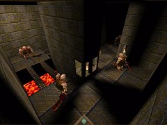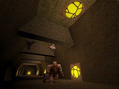 ![]() Well if the title of the map is to believed, this is another great debut release that shows that there is little excuse for releasing poor first levels. In fact, it's like the author had the same maxim as me: "aim for Id quality or better" - for this map takes a map style that's reminiscent of Id's own metal maps, makes it equally well, adds some original touches and makes it twice the size of an Id level to provide a jolly good level that is equal or better to Id's (though the gameplay balance is not up to standard in places). This is not a point about making levels in a similar style, BTW, it's a point about quality and design and Id's quality being the starting point for good custom maps. And indeed this is a good custom map, well made, well themed and pretty well rounded. The architecture is solid and good - in the way that metal maps are, nicely proportioned and detailed with the standard metal elements like lava, gargoyles and runes all adding interest and familiarity. There are some nice touches such as blue details on the wall, a set of spiral steps, and a lava canyon with a nice rock texture. There's enough angles and varied designs too and the whole map is appropriately themed with no out of place sections. On the downside, there no really spectacular designs in the architecture, some corridors are a bit plain and some more angles would be nice in places. Overall the architecture is good, and well built. One thing I like is that the lava is used with restraint rather than to make life awkward, though be wary of a dunking at the end of the canyon. The map does feel quite lengthy in layout, though you'll find yourself winding your way back to previous areas at various points - there's no exploration however, progression is linear. A few secrets and the first one is very useful - a bit too useful in fact as you kinda need what's inside. Gameplay is very solid and contiuously tough, with little respite until the end (but equally, very few unfair combats). Appropriately, you face a lot of Ogres, as well as other medium class monsters. The gameplay tends to be fairly simple: see monster, shoot monster, repeat, though there are some more interesting combat situations, and it is fun enough just to wade through queues of monsters. Although the gameplay is well balanced and fun through most of the map, it's not well balanced at the start and finish. The start puts you under light but immediate attack by monsters, something I am not keen on, and it forces you out into a situation that is rather awkward for the undergunned start to a map. From there, the gameplay gets more fun, though ammo gets rather tight in the lava room in the screeny above. After this, the map proceeds very well, good reasonable fighting with plenty enough ammo and armour, until the very end which is very easy and disappointing. There is simply no big climax at the end - a pity. So the map could have done with a bit of gameplay tweaking, but aside from that it's a good map in a reliably traditional style. - - - - - - ![]() |