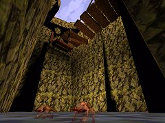 ![]() Onto an aspect I usually have to skim over with a comment like "Progression is fairly linear blah blah blah....". Yup, exploration, and fitting with the style of these maps, there is much exploration to be had, both necessary to finish and also to get secrets. The exploration starts with the, well, start map, and continues to tail off sometime in the second map. In particular the first main map has lots of exploration, and some non-linear button pushing to open a door - enough route choices in that area for sure, and it all fits in with the style of the map (though reaching one button requires too much annoying jumping). Equally, the secrets in the first main map are nothing short of excellent: all armours, all in cool positions, particularly the RA which is a real mountaineering expedition - great stuff. Sadly there isn't nearly as much exploration in the second map, though you do have some minor route choices. Overall, a nice and fitting exploratory feel. Gameplay is good too, generally in the "plenty of monsters, plenty of ammo" vein, which is fine by me. There are quite a few Grunts in the first map, and I don't think these fit in too well with the theme - they don't go well with Knights. Aside from this, there's a standard balance of medieval monsters, heavy on the Ogres, Knights and DeathKnights - no Scrags which is a pity as they would have worked well I feel. In addition, there are some custom monsters at the end, and these actually fit in and work fairly well, I am pleased to say. They are appropriate to the theme and "lost island" idea, they look pretty good and are fun and interesting to fight too. However, they do look a bit cliched (I'm letting you see what they are for yourselves, okay?), and would be much better if they looked as weird and evil as some of the Quake monsters. But as custom monsters go, not bad at all. As I said, the gameplay has plenty of monsters and plenty of firepower and you just wade your way through them. Nothing special, but fun and well balanced (some may find it a bit simple, maybe?). The end however is pretty special, firstly it's a good and fairly challenging arena style combat with the new monsters, and secondly there is a special treat if you pay attention. Without giving too much away, look in the small temple in the outside bit of the second map, and then see what you can do with that....if you work it out, try this too: when you finish the map, click on "fire" to continue, and you will restart...well you should see. This thing I am mysteriously alluding to is one of the coolest features in the map, and could have been used a bit more as it's great fun. Overall, good and interesting maps with some nice touches. (Did an Easy speedrun of Map2 in 0:49) - - - - - - ![]() |