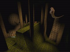 ![]() As I hinted at before, exploration plays a major part in these maps, which is definitely cool (well unless you don't like exploration). The episode as a whole is fairly non-linear, there are many routes and maps you can try before you get stopped and need to explore another route - this is good stuff. Additionally, within each map, there is often multiple routes, both to multiple exits, but also just exploring around the maps. Some of this exploration is essential to find clues, some of it gets you goodies, some of it is just for fun. I can imagine that some people may get stuck or confused, but I'm afraid that's the nature of the levels, and I do like exploration within reason - I found this to be reasonable. The one aspect I really didn't like was the wizard's tower, which relied on puzzles and trick gameplay - I can appreciate the attempt to try something more thoughtful, but it just bored me. Oh, there is no secrets as such, but there's enough exploration to make them superfluous - but there is a hidden Quad in one place - useful if you can get it and find it!! Gameplay, again something I mentioned aspects of before: toughened monsters and remaining ammo - you also get given all but 2 weapons and all ammo at the start, but this is both intentional and useful. Gameplay is good and well balanced throughout, starting easy and getting harder, though never really overwhelming given that you can always recollect ammo - in fact, if you were patient enough, you could make this level ridicuously easy by collecting more ammo and health after each fight (would you do that??? hmmm, your choice...). However, although the gameplay is good, it's not really special or exciting, and can be a bit repetitive, though the map designs and exploration do make up for this. There are a few interesting fights, particularly in the forest levels, and also there's a good use of Fiends in places. In general the style of gameplay involves fairly tough monsters, but plenty of firepower and space to move around. The gameplay does hot up a bit at the end, throughout the castle and dungeon (though there also is an awful instant death area along the castle walls, a very bad idea), with more tough monsters and tighter spaces. The real final conflict is, well, hilarious and confusing - it uses a Quake monster that has been modified with all sorts of whack stuff, some of which makes for a very dynamic fight. It can be very hard if you've run out of cells and rockets though - certainly it's a fitting end, and though challenging, fun too. Overall, a large meaty episode, with some flaws, but plenty enough exploration and immersion. - - - - - - ![]() |