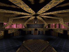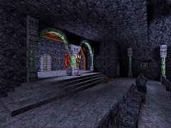 ![]() The plot is, well, a bare bones plot, basically you progress through the maps and kill the bad d00d at the end - but there is a nice twist which is cool. I feel that more effort could have been devoted to a richer plot and gameplay that went with that, but hey, this is still Quake so I can live without it =). Onto the levels, and you certainly get an interesting selection, including a town (decent layout but very primitive, not that impressive), forest (very cool and atmospheric), farm (nice, some forest in it as well), church (impressive but very slow), cemetery (small but cool), wizards tower (wierd and gimmicky but some good designs - not much of a tower sadly), castle (a proper castle for sure, very good), and dungeon (metal style, some good designs). All of these fit into the fantasy theme well, all of them suit the episode, and give enough variety to keep you interested to see what's next. Best aspects of the maps included the forest maps, which were pretty good in style given that it's the Quake engine, and very atmospheric. With a gloomy feel, patrolling Scrags and an exploratory layout, I really liked these levels. Also, the castle and the church were impressive, detailed and looking pretty much like they are supposed to. There is also a good use of a really nice jade stone texture in the castle, church and cemetary, a texture I haven't seen before, but a great colour when mixed with the dark blue designs, and very pretty. Finally, the cemetary is pretty cool, very small map, but a nice rocky outdoor design. The wizards tower and dungeon were comparable in design: some areas were good with impressive designs, but some looked rather bland - not bad, but could have been more interesting. The town was the weakest of the levels, although the layout is good and suitable, and some of the buildings are cool, some of it seemed rather amateur, with sloppy texturing and plain designs. A pity as this could have been a really cool map. Naturally, this episode does try to do some real life� stuff that Quake isn't suitable for, but because it's in a fantasy vein, rather than real real life�, it mostly works quite well. Overall, the architecture is variable in style and quality, but much of it is very good and interesting - I do feel that some maps could have been finished more professionally though.