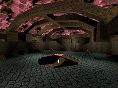 ![]() A very new and very large map, done in a variety of metal and gothic styles, and with a fairly "old skool" feel. The style and theme is both good and not so good - on the good side, there are some cool styles in the map - some standard metal styles, some very detailed metal styles, and some original and impressive arenas. On the downside, there are some other styles that are are rather gaudy styles (the blood soaked walls), but the main issue is that the varied styles don't link well together. They don't look totally out of place, but there are some areas that are quite disparate - more consistent texturing would have been better. The actual architecture doesn't suffer as much as the textures do from this problem, and is generally good, great in a few places and plain in a few places. As said, there are some impressive arenas (the scale of the map is definitely large), and some areas that have plenty of well done metal details. There's a good use of angles and decorative touches too. However, the lighting does let the architecture down a bit - it is realistic, but too contrasty, with fairly bright and pitch black areas, which does tend to spoil the lines of the structures, making them hard to make out. Another lesser flaw is that the details can inhibit movement in a few places - recessing details into floors and walls, and smoothing things off with clip brushes would have improved this. Overall, the architecture is good, with some good designs, but it could have been great with more consistent textures and styles. There is also another issue related to the design - a few designs are *very* reminiscent of other maps: specifically, the start reminds me of Grc4beta, there are pillars identical to those in Sgodrune, and a lava "pseudo-trap" identical to that in Mexx8. Whether this is intentional I don't know, but I don't think it's good to include designs that can be recognised from other maps - it wouldn't take much to restyle them to look original. Being an old skool style map, there is a no exploration, it's just a "kill monsters, move onto next area" type map - well it is Quake after all =). There is certainly a lot of killing to be done, with 125 monsters!! The gameplay style is that you get a few weapons (double shotty and grenade launcher), and wade through a lot of medium monsters (Ogres, Scrags, Fiends, Death Knights). The monsters don't appear in overwhelming numbers, but they do tend to *appear* - i.e., there are LOTS of monster surprises - in fact every main area has at least a few teleporting monsters. And hey, it's cool - some surprised me, most didn't, but it's fun to get your reactions tested (mine usually involve running to safety :P) - though it wasn't as dramatic or scary as Sgodrune. The challenge is quite high overall, not because of any particularly hard combats, but just because you have few weapons, the combats require good reactions and movements, and each one takes it's toll. The final battle is quite fun too - not really harder than anything before, but a nice combat to be sure. There are a few flaws - in a couple of places it's easy to fall in lava without realising, the combat can get repetitive as there is a lot of the same style of combat, and also there is no skill settings meaning players who find it too tough don't have an easier option. Overall, a good challenging map, with some impressive styles, that would have benefitted from a stronger theme. (Did an Easy speedrun in 0:46 with a huge shortcut.) - - - - - - ![]() |