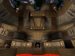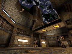![]() Important note: This map uses the Zerst�rer modifications. Zerst�rer is fantastic and you should have it already (get it from the Cdrom.com Zerst�rer directory), but if you don't have it, you MUST download this dml6prog file to play the map. Welcome to Damaul6....this is the future of Quake single player levels. Combining a unique industrial style, consistently excellent architecture, a deathmatch influenced layout, highly structured monster usage and the classic Zerst�rer mods, Damaul has created a truly original masterpiece that shows how much potential Quake single player levels still have. The map has a futuristic and industrial feel with gothic influences, very different to normal base type levels, and sticks well to this theme. It's clad in a mixture of metal beam, metal grille and Q2 style concrete textures, almost all are custom or modified textures. There are plenty of textural details such as lights and grilles, which compensate for the (very few) plainer sections, as well as enhancing the already impressive structures. Architecture is uniformly excellent - every single area has something to offer visually (some areas really stand out - both gold key areas especially), and no area is deprived of details or interesting designs. This consistent quality is very impressive indeed - it's rare to see a level with this architectural "completeness". The most common designs are open multi-level rooms with overhanging roof sections and towers of the very skyline of the level, but these are mixed in with more interesting curved and castle-like designs. This gives some good variation in style, but the textures provide a common theme. I do have a few minor criticisms though: some very vertical areas make it hard to see some of the impressive designs, and I didn't see anything quite as cool as the final castle in Damaul3, and it would have been really nice to see Zer's rain effect. But overall, the architecture is just top quality, well themed, well detailed, heavy, oppressive and impressive. There is a little bit of exploration around the map's convoluted layout, mostly to find necessary switches, but no secrets which is a shame. The map's high interconnectivity means that you revisit many areas at a variety of amusing altitudes, making good use of the layout. Onto gameplay, which is at least as well crafted as the map itself - Damaul has crammed in well over 100 monsters (base, miscellaneous and Zer), and produced a continually tough map. The most noticable aspect of the gameplay is the refined use of monsters, which are placed and distributed with the greatest precision to enhance their strengths. Grunts and Enforcers are used from all directions to make dodging their fire harder, Ogres are placed on ledges to provide a veritable grenade storm, Scrags lurk behind high towers to ambush the player, and Mega-Enforcers, one of my favourite add-on monsters, are used in nasty places which makes their attack/shield combination very hard to deal with. Some people complain about Quake's stupid monsters, but when they are used this well, you might be surprised about how effective they are...and of course you get the usual entertaining appearing monsters malarkey, with lots of surprises and shocks. I found this gameplay required a blend of aggression *and* tactics to deal with, which is satisfying. Also, you get some cool Zer weapons, but sadly no chainsaw nor the Zer powerups. Again, I do have a few criticisms: a couple of sections can be very hard to survive first go, the end is fairly challenging but not the quite apocalyptic climax I expected, and most seriously, the skill settings make little difference, meaning it could be unpleasantly hard for some players. But if you are up to the challenge, the gameplay is rewarding indeed. One of the very best single levels made....essential. (Did an Easy speedrun in 1:17 with a huge shortcut.) - - - - - - ![]() |