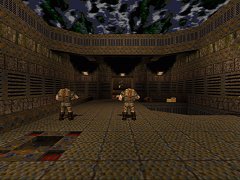 ![]() Tiddle's third recent level, and one pretty much identical in style and quality to the previous two, though of couse different in layout and gameplay situations. This is quite a simple map in an industrial metal style. Thus it's made from concrete or stone walls, heavily covered with metal beam and grille trims, structured with some subtle angles and a few pillars, and detailed with hi-tech lights, grilles and crates. All of this is very cleanly made despite the grimy style. It also has quite a bit of lava, and some nice solid bunker-type doors. Unfortunately there are no impressive room designs (the pillar room is probably the best), and no spectacular structures either, but for a simple map, it's very well done and quite appealing. Progression is simple too, just a matter of finding the right switches to open a mostly linear route - there is a minor route choice round the pillar room, but no secrets. Combat is fairly straightforward and pleasant, facing plenty of base enemy as well as a few tougher monsters. It's mostly facing Grunts and Enforcers straight on, where retreating and letting them come to you is the easiest tactic - and this level is fairly easy overall, perhaps because of it's simple design, and ease of retreat. The tougher monsters provide more of a challenge, and can surprise you a few times - including a particularly amusing "behind you" trick. The weapons selection, ammo and health were all well balanced, with not too much nor too little. The gameplay progressed well throughout, though some more staged combats and a tougher ending would have provided a more excitment. This level doesn't have skill settings either, so maybe the slightly easier gameplay is a good idea, but more challenge and skill settings would be better. Still, a nice, well made level. - - - - - - ![]() |