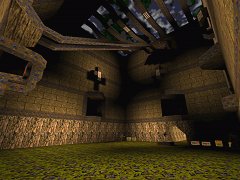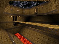 ![]() Vigil's first released level, and he's certainly put his experience gained from reviewing Q1 DM levels to good use. The style of this level will be familiar to Q1 DM custom map fans, but is a fresh style in Q1 SP: a mixture of medieval wood, brick and rock textures, with heavy use of metal beams, futuristic lights and grilles to create an interesting industrial/medieval hybrid. There are a couple of other distinctive styles used in this map: the lava details at the start, and the floating platform at the end, both add interest (the latter, possibly inspired by the Damaul, is quite spectacular). However, it would have been better (more coherent) if those two aspects had been used more throughout the map. Architecture is good the whole way, though some corridors are plain, there are lots of interesting structures and designs with plenty of variety from area to area (though the strong theme keeps it linked together, mostly). Roof designs, metal beam structures and lighting details are most common, and produce an attractive map when combined with good use of angles and textures. The only real flaw is the lighting, for some reason it was curiously flat and slightly bright in many areas - given the amount of spotlights and the night sky, gloomier and more contrasting lighting (used in a few areas) would have been more appropriate. Exploration is limited to a single side area to explore, which is useful to get armour, and sadly there are no secrets. However, the progression is given some interest by a couple of tricks using air vents and "pretend" endings. The gameplay is good throughout, though the use of both base and medieval monsters detracts from the feel - with the style of the map, either base or medieval monsters could work, but having both Grunts and Knights together just doesn't seem right. But as far as actual combat goes, it's fine - the map starts off slowly, and progresses via a mixture of straight up gameplay with some gang attacks and a few surprises, to an interesting and tricky ending. Monsters are mostly medium or weak monsters, with the "big" guys curiously lacking, but they are often used in sufficient numbers to provide a good challenge. To keep the balance fair, there is plenty of ammo, but less health meaning some care is required. The ending is interesting, but can be easily avoided - there are lots of monsters shooting you when you are on a floating platform, and fighting them is very difficult, but you can just run past them... The main problem with the gameplay is that saving didn't work for me. This might be a problem with my computer or Quake, but it works with other maps and not this one, which gives you no margin for error when playing the map - an annoying bug. Aside from that, a solid map with an interesting style, go get it. - - - - - - ![]() |
