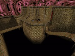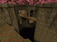 ![]() Strange name, strange level. Well, strange and very cool level =). Unlike The Occursed, this map uses mostly conventional Id textures, and derives all it's originality from a unique design and architectural style. The level consists of a series of interlinked courtyards and multilevel sections, surrounded by a pitch black abyss - a very distinctive design/layout that provides an fresh, unnerving atmosphere. The actual structures of the level have their own style too, with plenty of curves used along the rims of the walls (usually in a "quarter pipe" style) and around arches, along with angled, overhanging ribs on the skyline of most walls. The texturing and theme is very consistent throughout, with a simple combination of cobbled stone walls and plain metal or stone trim and ledges. As well as the visual appeal provided by the actual design, there are a few medieval details such as stained glass windows and water pools. The overall effect is at once quite simple and quite astonishing, this really is a new style despite using old textures. However, it can get rather plain in places, in some of the squarer corridors, and more details throughout the level would have improved the look. Also, more sourced lighting could have been better, as the lighting can seem a bit flat, but this is definitely a cool and intriguing looking level. There isn't much exploration, as you follow a linear path, though it does wind around the level in a pleasing manner, and there's a couple of secrets, of which the one I found had a nice mechanism. Like the design, the combats have some interest with a style of their own. You face the full contingent of medieval monsters, especially the notorious Scrag, which is used in vast numbers, which fits with the style of the map as they appear from the depths or pop up from behind buttresses in their Scraggy little squadrons. Throughout the map you get good health and loads of ammunition, perhaps too much at some points as you can afford to waste it. However, at other points there are some cleverly set up combats and well used monster ambushes that make you glad of your armoury. Some surprises with Fiends, Vores and Shamblers were particularly effective, playing well to the monster's strengths, and of course, there is a constant worry about falling into the void to keep you on your toes. However, the ending is a bit weak, before it there is a nastily setup combat that felt somewhat unfair, but then the actual final combat is rather easy - some better used monsters would have made this more climactic. The gameplay did need more tweaking to get the overall balance right, but generally this unqiue level provides plenty of interest, and shouldn't be missed. (Did a very cool Easy speedrun demo in 0:52) - - - - - - ![]() |