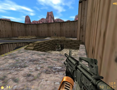 The only other thing worth mentioning here is that this set piece suffers especially from the big flaw in Half-Life bosses: the feedback when attacking the helicopter is unclear. The player has a hard time knowing how many hits the helicopter will take before dying. There's sometimes no clear indication that the helicopter is even taking damage when it's hit�a thin trail of smoke is the only sign the chopper is nearly dead, and it�s often hard to see at a distance. There's no reason for these feedback mechanisms to be unclear; even a few clear sound files and texture changes indicating hits and progressive damage would have been easy to implement to great effect. These things do exist in Half-Life, but they�re often (as is the case here) too subtle to notice during a firefight.