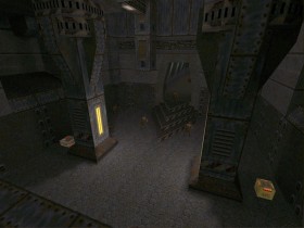 This is Speedy's first Q1SP map, although he has been mapping for a while. So far he has stuck to Quake 1 and Quake 3 DM maps, as well as producing many texture sets. This is a smallish to medium sized base map, with a custom texture tech theme, which is decent. The textures are mainly blue and although quite good, it would be better if their was more variation in color and type, overall its a bit uniform. The architecture in general is basic but fine as far as it goes, and the lighting is also standard. The map layout is actually based on the 1st map from Doom2, which you should recognize if you have played id's old classic.