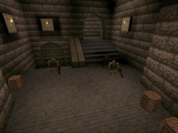 This is a village (duh) in a decidedly *bad* state, broken houses, rooms, windows, wooden beams and stones lay scattered all over the medium sized layout. This is well done, although the overall feel is sometimes slightly claustrophobic and cramped and the tricky uneven floor, strewn with stones and suchlike can make fighting more frustrating than it should be. Progression is fairly complex as well, dependent on finding a whole sequence of buttons and keys, which some players may find confusing. Gameplay is also tricky and testing. Overall this map has a good concept, which is well implemented, but its complex layout may be slightly frustrating for some novice Quake 1 players.