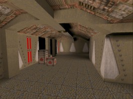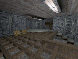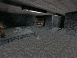 This shares a number of similarities with "alana", [reviewed above]. Its another small base layout, with the emphasis on exploration via a series of underwater sections and tunnels to find buttons which open up the way to the exit. Again both architecture and gameplay are straightforward. One difference is this map's use of custom blue textures, these are applied somewhat uniformly and as a result tend to look a bit bland in places, they work better where they are offset by the florescent white light fixtures, which also provide better contrast in lighting and hence resulting atmosphere.