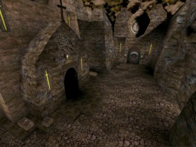 This pack is a sequel to "Carved In flesh", although it can be played either stand alone or carrying on from those maps. Architecture continues the feel of Carved in Flesh; lots of rockfaces and open rocky areas linked by stone corridors and heavy sliding doors. There some very imaginative brushwork including stone bridges, platforms and walkways and everything has a satisfying chunky, solid feel. Texturing is again a standout feature of the maps, with some highly imaginative and interesting textures, especially on doors and windows. The map also has a significant amount of new custom monsters and weapons [from the readme.txt]: