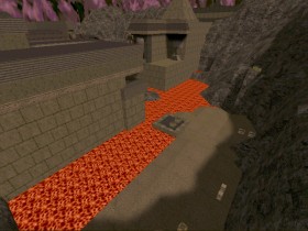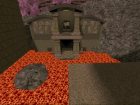 This is challenging, clever map with a good interconnected layout. Architecture is nice, mixing an Egyptian style temple theme and texturing against an organic background of lava and natural rockface. The layout is not particularly large, but it plays bigger due to the clever interconnected pathway the player takes to find the blue/gold key progression in classic Q1SP style.