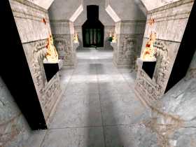 The feature of this map that i was most impressed by was its originality. Only the old map, kjsp1: Avanipaala Praasaada from several years ago has a similar testuring style. The style is a medium-sized, white, Indian marble textured temple, with good Buddha/Indian type texturing, mixed in with some wooden doors, walkways, planks and in addition some metallic bars and trim.