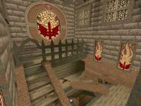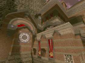 However some of the brushwork and texture alignment seemed slightly messy and also basic looking. Texture choice in general is reasonable, although nothing outstanding and i felt a slight mix of too many disparate styles of both textures and architecture. A more consistent, neater theme might have given the map more architectural character. Some of the map seemed somewhat bright and sunny as well. There were good touches like the clock-faces and rivers and pools of blood on the positive side. Nearly all the areas are well interconnected vertically and horizontally.