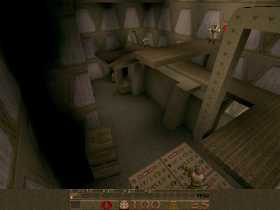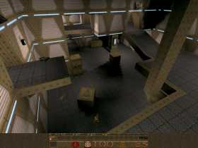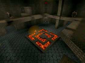 Architecture, (as in sg13) is again quite consistently textured and themed throughout the map, to provide a atmosphere and feel strongly reminiscent of the original quake game, which is reinforced by the map size and scale. There are some good structures such as the metallic beams over pools of glowing lava, and such features are enhanced by a good use of shadows and lighting in certain areas.