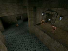 Gameplay suffers from being too easy, predictable and limited. Only grunts/enforcers/dogs are used which makes the map too simple. Enemy placement is also somewhat predictable. Health is a bit over-generous which adds to the lack of challenge, although weapons and ammo are balanced well enough. I think harder gameplay or less health would have helped this map a bit, but overall its a decent idBase map which is rather average in its gameplay and layout.